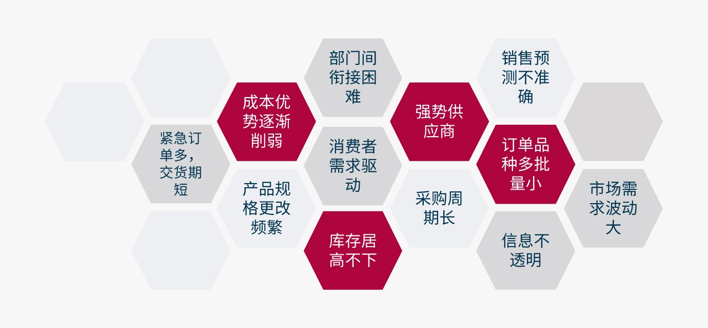 在当前的生产环境下,客户需求、产品品质、生态系统和流通模式正在发生巨变,制造企业不得不面临小批量、多品种、市场波动大等问题,随之而来的是交付延期、产能不均衡、生产效率低下、库存资金占用大等传统管理方式无法解决的困扰。