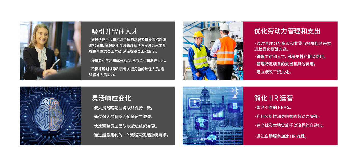 (HR) 部门管理职能从传统的招聘、培训、薪资、薪酬和绩效管理转变为提高员工敬业度、改善生产力和提升业务价值。在人力资本管理 (HCM)