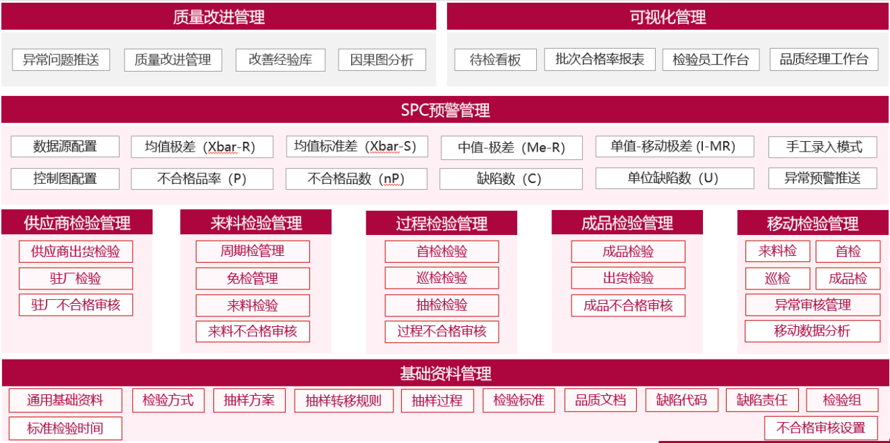赛意信息SQMS质量管理系统,主要从质量预防、质量控制、质量分析、质量改进、质量追溯各方面,帮助企业实现检验标准规范化、质量数据一体化、质量管理可视化、质量异常实时预警、质量改进闭环跟踪,以提高企业产品质量保障能力;对生产数据统计,SPC实时预警,品质异常实时监控,品质数据采集分析,KPI管理,改善,防呆,品质追溯等方面第一时间响应并及时提醒,帮助企业打造基于PDCA管理思想的质量监控平台。
