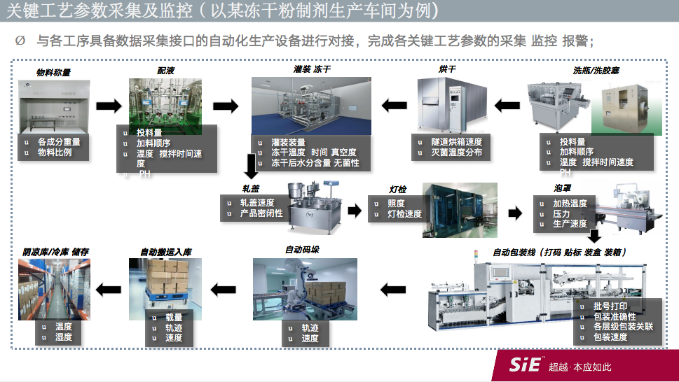 “中国制造2025”引领药企提升信息化与自动化水平,赛意信息认为制药企业数字化转型的本质,在于借助计算机化程序,建立起各项标准化规程,例如新品研发设计、生产工序动作、关键工序设备、工序监测过程等。因此在和制药企业合作进行数字化转型时,赛意信息会根据药企的自身情况,更快更好地在竞争加剧和成本价格提升的条件下为企业尽可能节约能耗,降低生产制造总成本,以期通过数字化转型,对生产关键产出项进行多维度对比分析,达到公司各项标准的统一,最终进行集团的垂直管控。在本次活动现场,赛意信息还分享了为某冻干粉企业进行关键工艺参数采集及监控的智能流程路径。